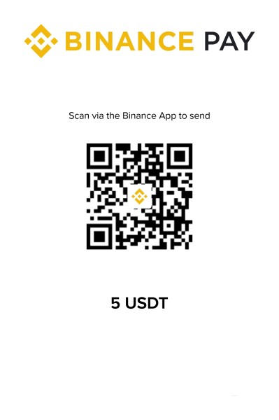 Currently, I can only accept crypto as donations via Binance. You can send me cryptocurrency (USDT) using my Binance ID (171 525 63) or one of the QR Codes below. Thanks in advance.