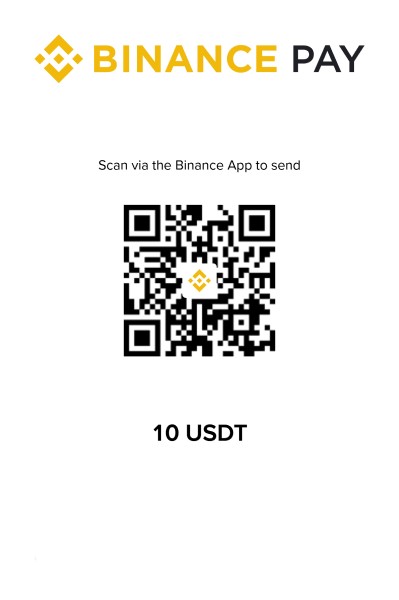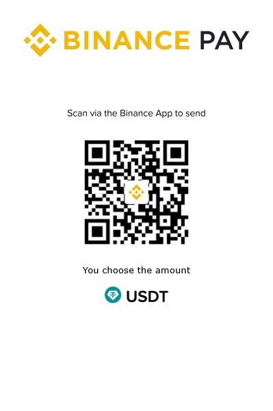 Currently, I can only accept crypto as donations via Binance. You can send me cryptocurrency (USDT) using my Binance ID (171 525 63) or one of the QR Codes below. Thanks in advance.