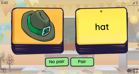 ESL interactive worksheet for kids to practise accessories vocabulary. Look at the pictures and the words. Decide whether two cards belong together or not. Tap Pair or No Pair.